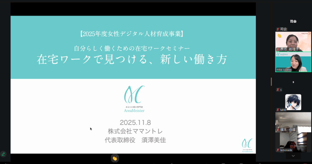 その活動の一環として開催された、神戸法人エリア・梅田法人エリア主催の「女性活躍Webセミナー」に代表の須澤が登壇させていただきました。